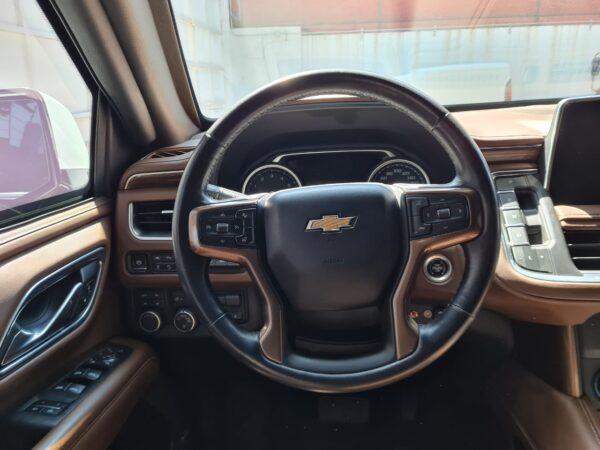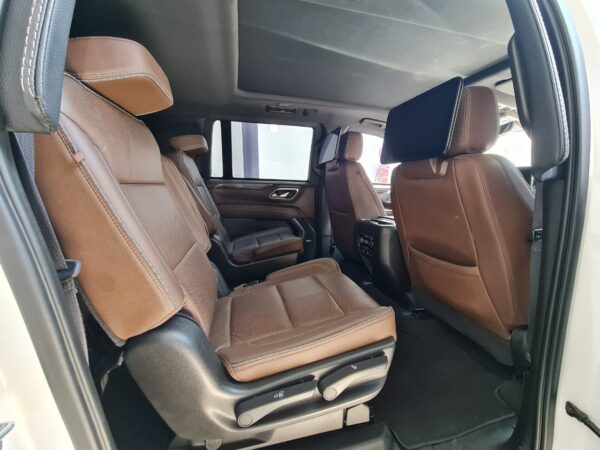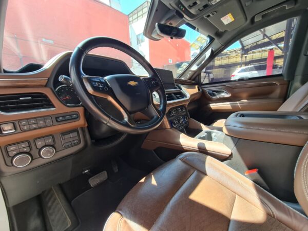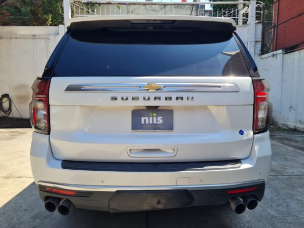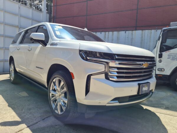 Chevrolet Suburban High Country es un SUV el cual está equipado con un motor Ecotec3 V8 de 6.2 Litros que genera una potencia máxima de 420 caballos de fuerza y un torque máximo de 460 lb-ft, además integra una transmisión automática de 10 velocidades con tracción 4×4. El confort no es problema en este SUV, ya que cuenta con asientos de cuero y capacidad hasta para 7 pasajeros Asientos de 2a y 3a fila plegables eléctricamente (arriba y abajo) y un sistema de entretenimiento para la segunda fila con dos pantallas de 12 pulgadas e incorpora una pantalla táctil de 10.2 pulgadas para infoentretenimiento con sistema de sonido Bose®. En seguridad, dispone de siete bolsas de aire y cámara de visión 360°, control crucero adaptativo, alertas de detección y mucho más.