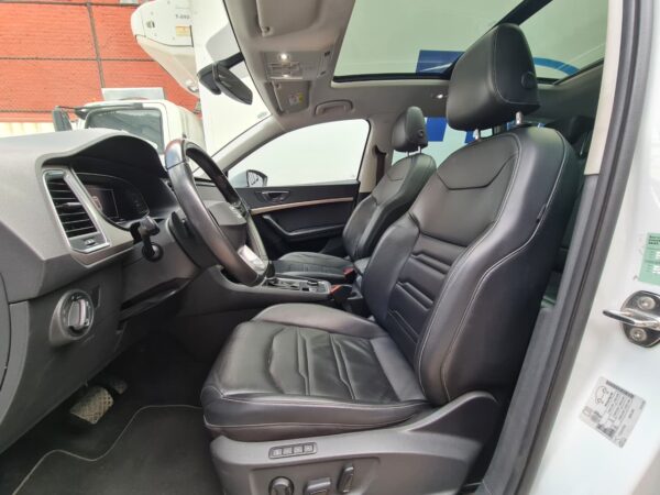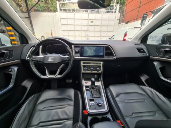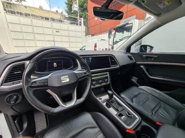 Seat Ateca Xperience es un SUV que cuenta con un motor de 1.4 Litros 4 Cilindros el cual proporciona una potencia máxima de 150 caballos de fuerza y un torque máximo de 250 Nm, gracias a estas prestaciones alcanza una aceleración de 0-100 en tan solo 9.0 segundos y una velocidad máxima de 195 km/h, tiene una transmisión automática de 8 velocidades con tracción delantera, el interior es cómodo y lujoso con capacidad para 5 pasajeros, el clúster de instrumentos es digital de 10.2 pulgadas y su sistema de infoentretenimiento es una pantalla táctil de 9,2 pulgadas ubicada en la parte central de la consola, cuenta con seis altavoces, además incorpora sistemas de seguridad como control de estabilidad, frenos de emergencia, sensores de estacionamiento y mucho más.